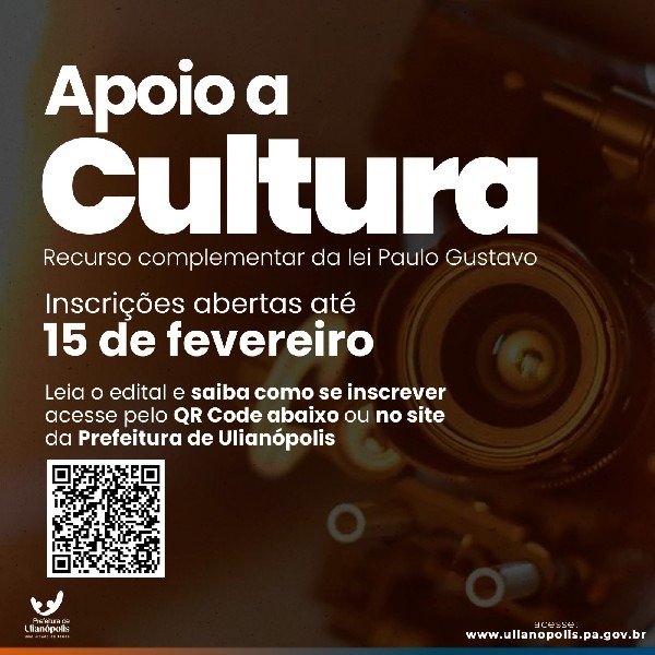 ATENÇÃO PARA A DIVULGAÇÃO DO EDITAL LEI PAULO GUSTAVO DATA DA INSCRIÇÃO DIA 01/02 a 15/02 de 2024 Agentes Culturais de Ulianópolis, preparem-se para esta grande oportunidade de inovar e ampliar seu projeto! #prefeituradeulianopolis #gestaokellydestro #acidademaisdocedopará Links Clique Aqui P/ Baixar o Documento