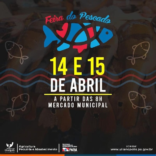 A Prefeitura Municipal através da Secretaria de Agricultura, Agropecuária e Abastecimento conjunto com os serviços da SEDAP, informam a toda população que nos dias 14 e 15 de Abril( Quinta e Sexta-feira ), acontecerá a 1 Feira do Pescado 2022 na praça do mercado municipal de Ulianópolis. A feira promete a maior oferta de pescado para equilibrar os preços no mercado, neste período de grande procura devido a semana santa. E esta gestão, alinhada com o desenvolvimento deste município, aposta em promoções culturais que fomentarão a economia local. #Boraprafeiradopescado #PrefeituradeUlianópolis #GestãoKellyDestro #Umacidadedetodos