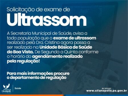 Solicitação de exame de Ultrassom A Secretaria Municipal de Saúde, avisa a toda população que o exame de ultrassom realizado…
