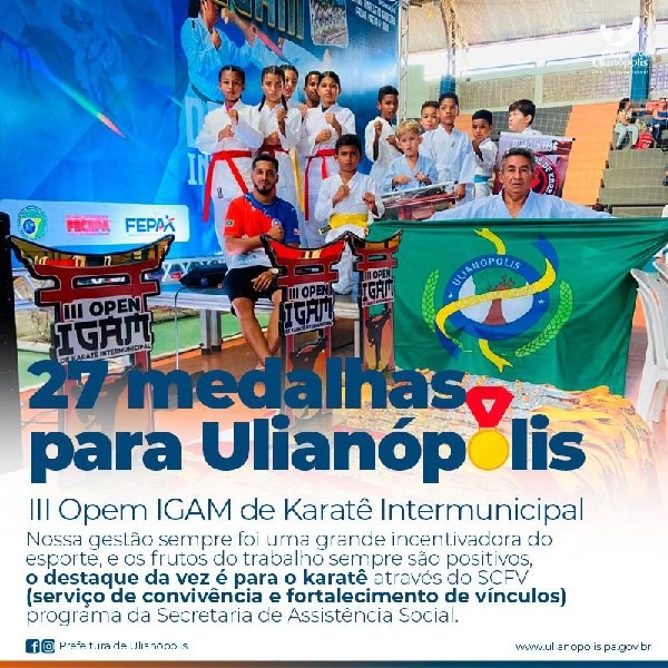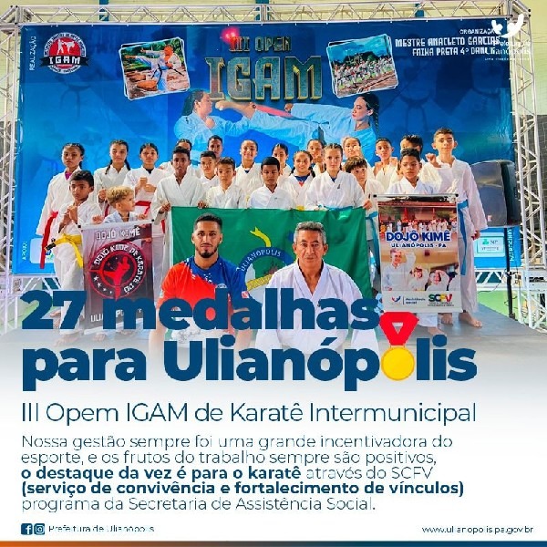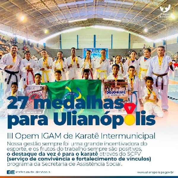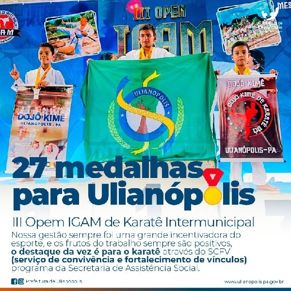Aconteceu nesta última semana, o III Opem IGAM de Karatê Intermunicipal no município de Paragominas- PÁ, onde alunos no Serviço de convivência e fortalecimento de vínculos da assistência social ( SCFV) e Dojô Kimê, acompanhandos do professor Esdras Fagundes, obtiveram êxito na competição e retornam com o total de 27 medalhas no campeonato.
