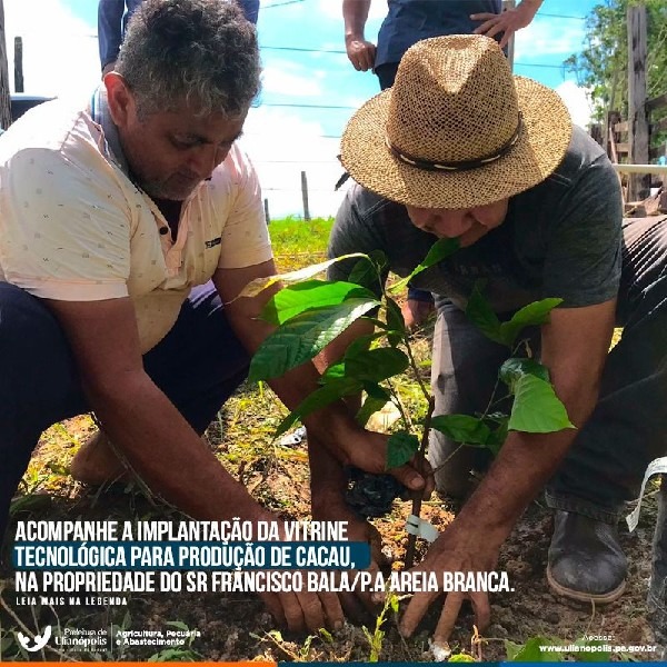 Já são 2 mil mudas de cacau implantadas na nova vitrine tecnológica já instalada na região da comunidade Areia Branca, sendo 1mil de variantes clonais e 1mil de variantes híbridas .