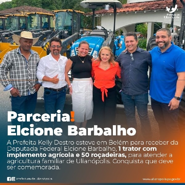 ULIANÓPOLIS, VIVE MOMENTOS DE CONQUISTA. A Prefeita @kellydestroulianopolis, esteve neste último dia (30), no palácio do governo, em Belém, juntamente com equipe da @semagri.ulianopolis e chefe de gabinete @marcossena_, recebendo das mãos do Governador @helderbarbalho , um trator com implementação agrícola e 50 roçadeiras, fruto de emenda parlamentar da Deputada @elcionebarbalho.